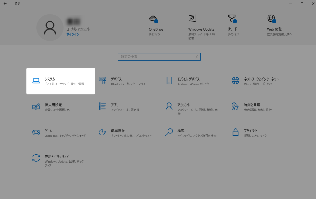 ②「システム」をクリックします。